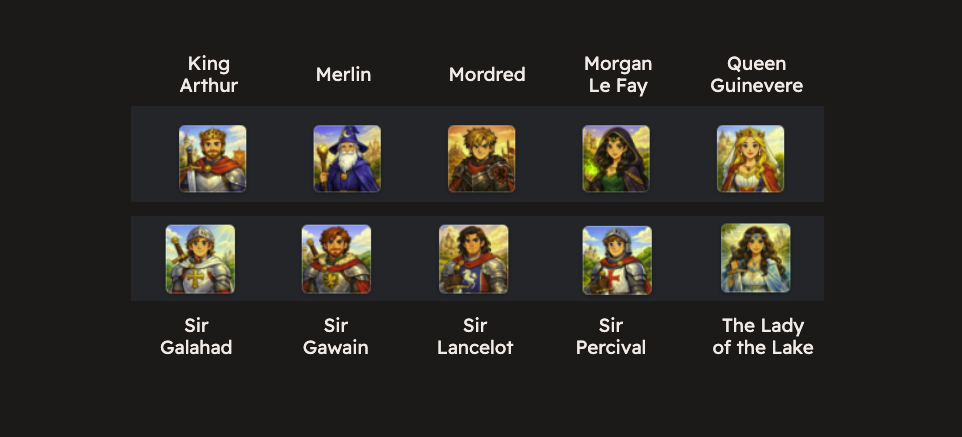 We see familiar characters like Merlin, Arthur, his wife Queen Guinevere (also known as Geneva), and Sir Lancelot 🗡️. The metadata for each character is available as JSON (see the full file here ).