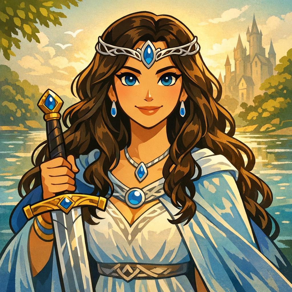 We get the Lady of the Lake as a result, who is “a mysterious supernatural figure associated with Avalon, known for giving Arthur the sword Excalibur.